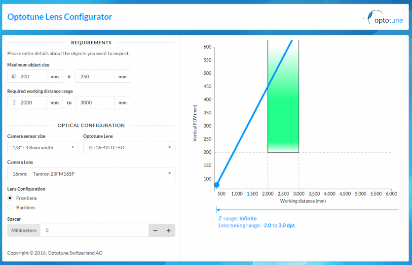 Optotune Lens Configurator : 사양 입력후 Z축의 변화 폭 시뮬레이션 페이지 정보 작성자 관리자 조회 12,505회 작성일 16-01-27 15:37 본문 Optotune Lens Configurator 가 구동됩니다.사양 입력후 Z축의 변화 폭을 보실 수 있습니다. http://configurator.optotune.com 목록 이전글Lasers for Optogenetics (광유전학) & Neuroscience (신경과학) 16.03.05 다음글gRAY Thermal Power Sensor (Analog OEM)의 응용분야 소개 15.10.12