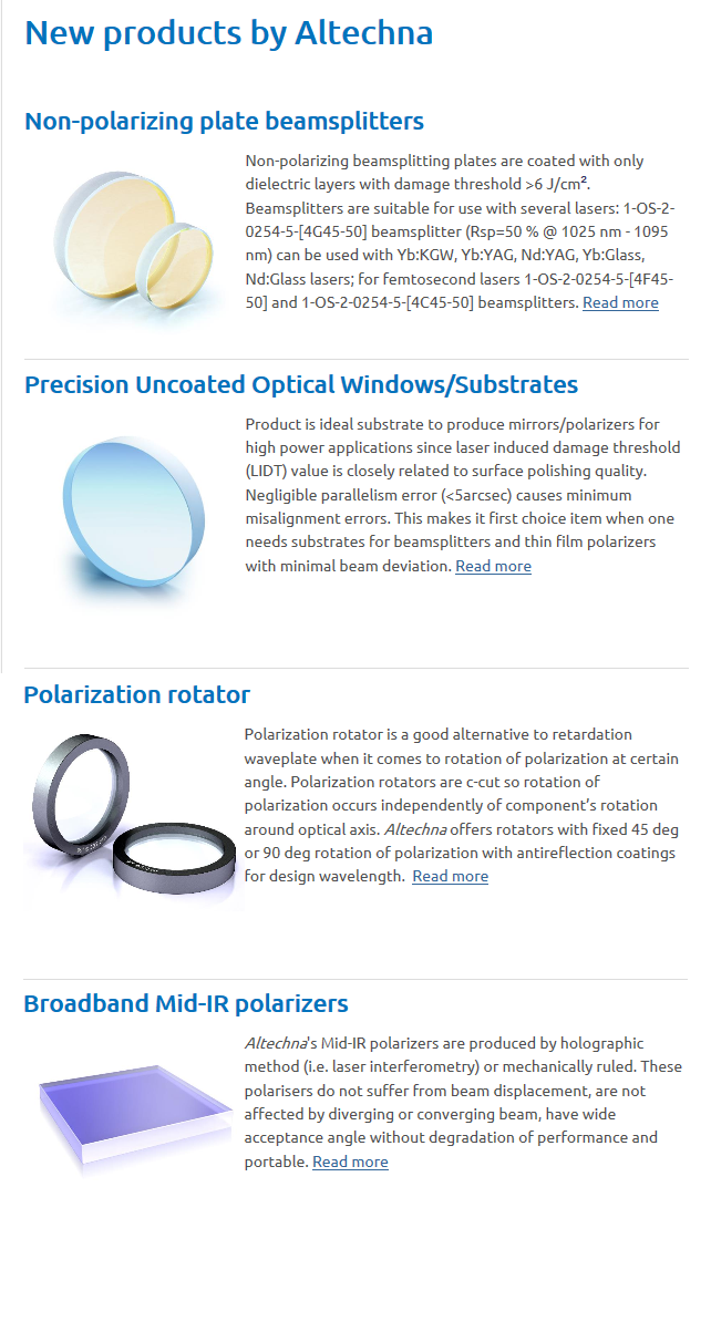 [Altechna] New Products 페이지 정보 작성자 관리자 조회 10,840회 작성일 13-11-14 15:15 본문 목록 이전글[Laser Components] Prescision Lasers with Integrated Battery Pack 13.12.11 다음글NIR Counts Single Photons from 400-1000nm 13.11.15