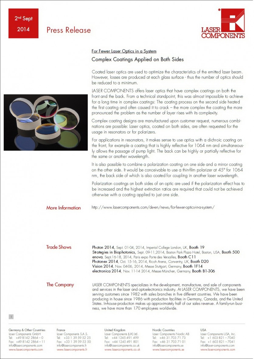 For fewer laser optics in a system complex coatings applied on both si… 페이지 정보 작성자 관리자 조회 11,422회 작성일 14-09-03 10:15 본문 목록 이전글Coating of Optical Fiber End Faces 14.09.05 다음글펄스 레이저 고속 미세 가공 연구 14.07.25