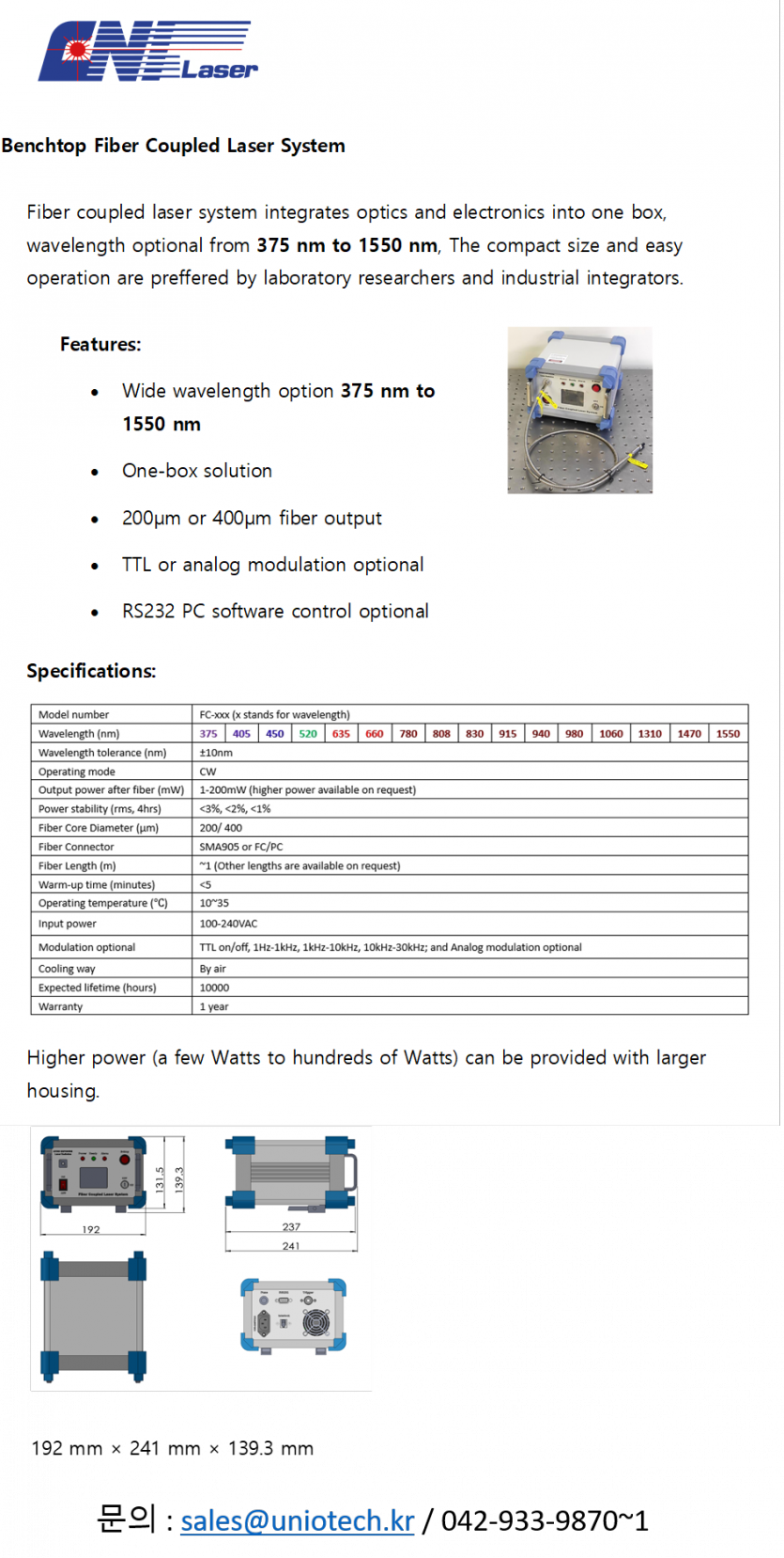 CNI 社 Benchtop Fiber Coupled Laser System 페이지 정보 작성자 admin 조회 3,923회 작성일 25-06-02 10:09 본문 #CNI 국내 대리점 #CNI 한국 공식 대리점 #CNI 신제품 #OEM Laser Combiner #유니오텍 #Uniotech #Laser #레이저 #광학 솔루션 목록 이전글[CNI] Single Frequency Fiber Laser 25.08.12 다음글CNI 社 OEM Laser Combiner 25.04.24