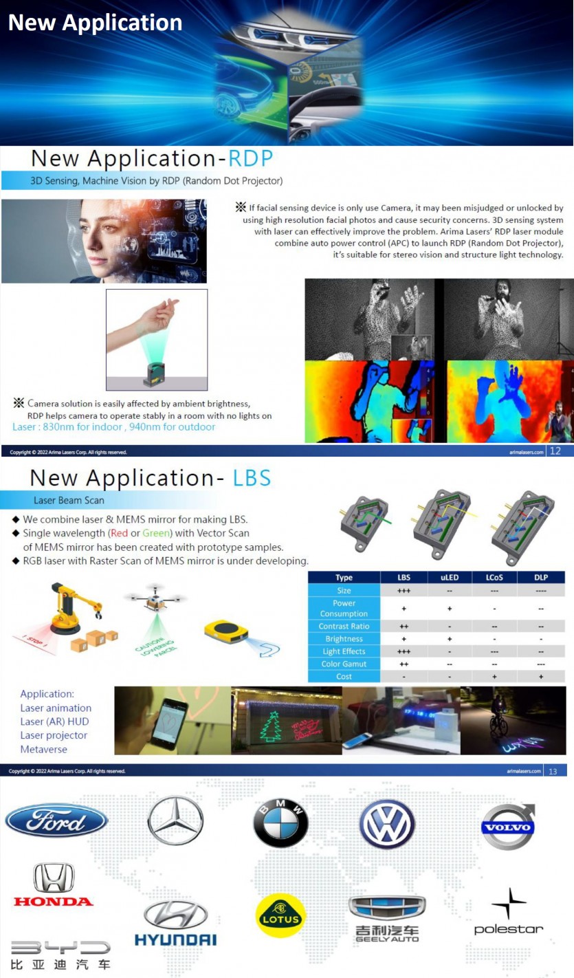 ARIMA LASERS Corp ,. "For Automotive Application 2022" 페이지 정보 작성자 admin 조회 16,215회 작성일 22-09-21 15:03 본문 -. Automotive Industry News for major customers-. Product Development Plan such as LBS and LiDAR-. New Application-. Announcement of opportunities for joint R&D 첨부파일 Arima Lasers Promotion file_for Automotive 3.pdf (5.3M) 547회 다운로드 | DATE : 2022-09-21 17:45:26 관련링크 https://www.arimalasers.com/en 5322회 연결 목록 이전글Polarized VCSELs Push High-performance Sensing and Telecom Technology 22.11.14 다음글(주)유니오텍 소개영상 22.08.18