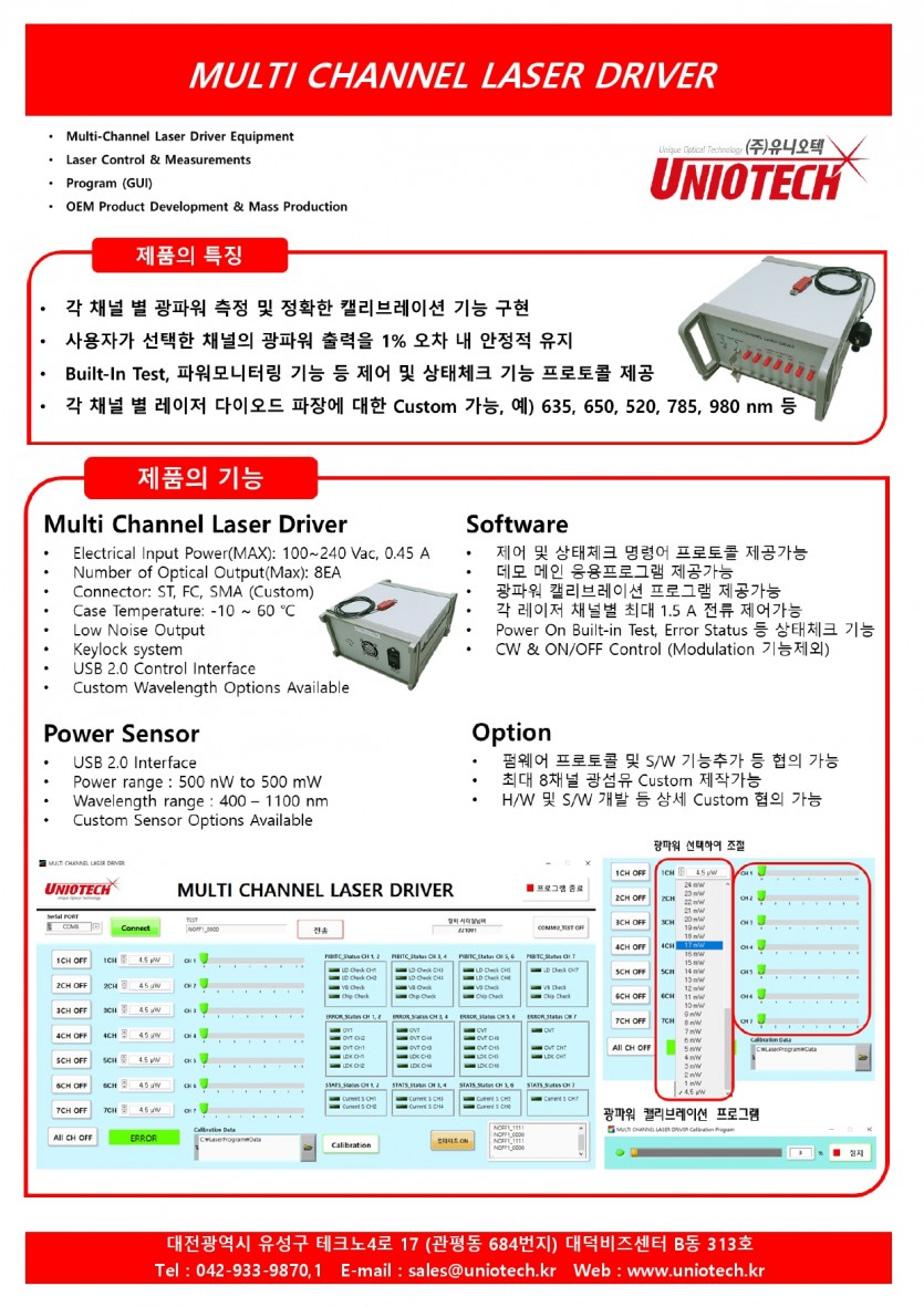 유니오텍 제작 MULTI CHANNEL LASER DRIVER 출시 페이지 정보 작성자 admin 조회 8,922회 작성일 22-04-15 16:27 본문 첨부파일 MULTI CHANNEL LASER DRIVER 브로셔.pdf (569.9K) 555회 다운로드 | DATE : 2022-04-15 16:27:56 목록 이전글Laser Power Stabilization System (레이저 파워 안정화 장치) 20.04.23 다음글Multi-wavelength Lasers-CNI Laser 20.03.17