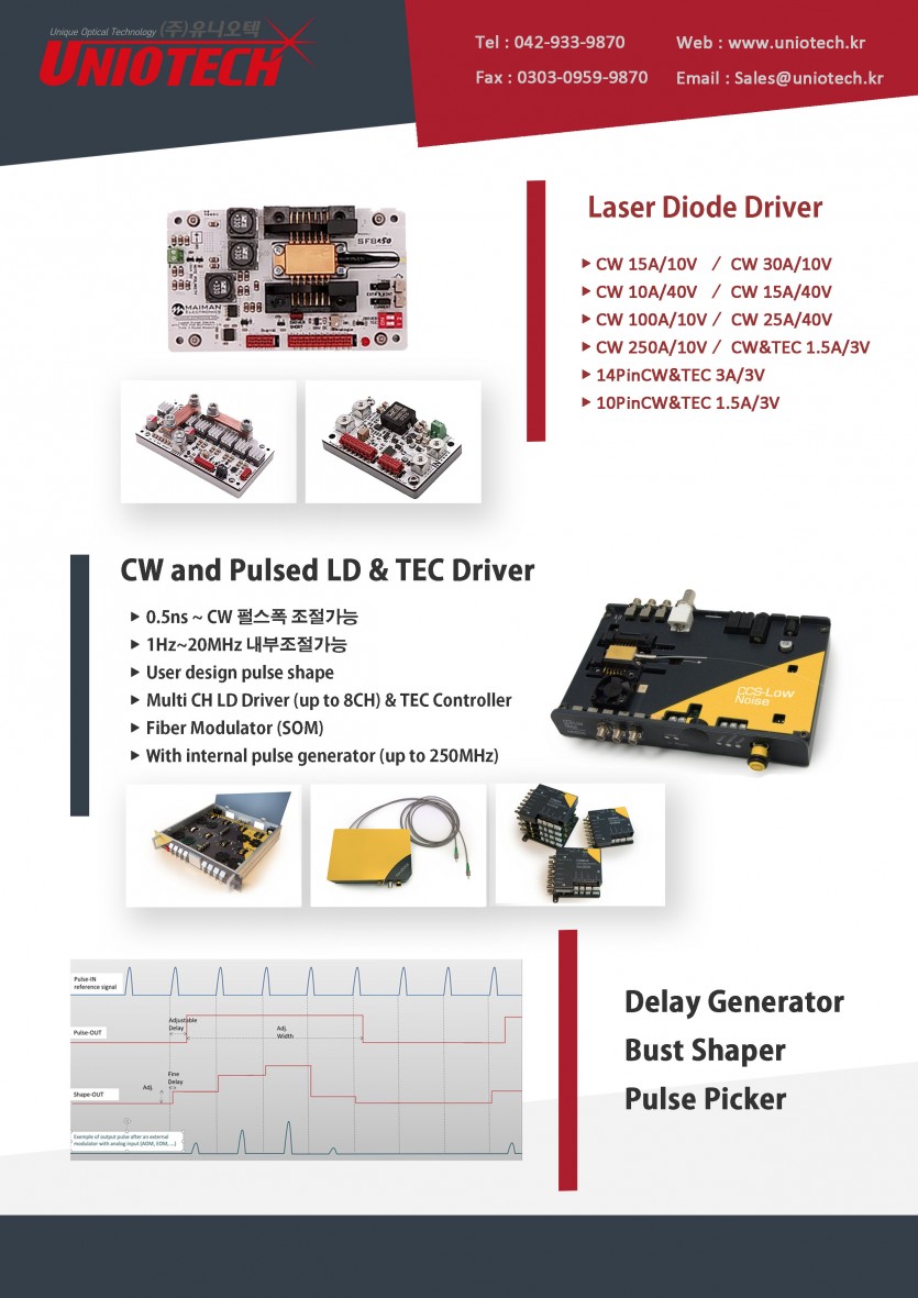Laser Diode Driver 페이지 정보 작성자 admin 조회 13,338회 작성일 20-04-23 12:50 본문 관련링크 http://uniotech.kr/shop/product_list.php?ca_id=6010&select=1&smc=1&fcn… 8167회 연결 http://uniotech.kr/shop/product_list.php?ca_id=6020&select=1&smc=0&fcn… 7950회 연결 목록 이전글Laser Power Stabilization System (레이저 파워 안정화 장치) 20.04.23 다음글Multi-wavelength Lasers-CNI Laser 20.03.17